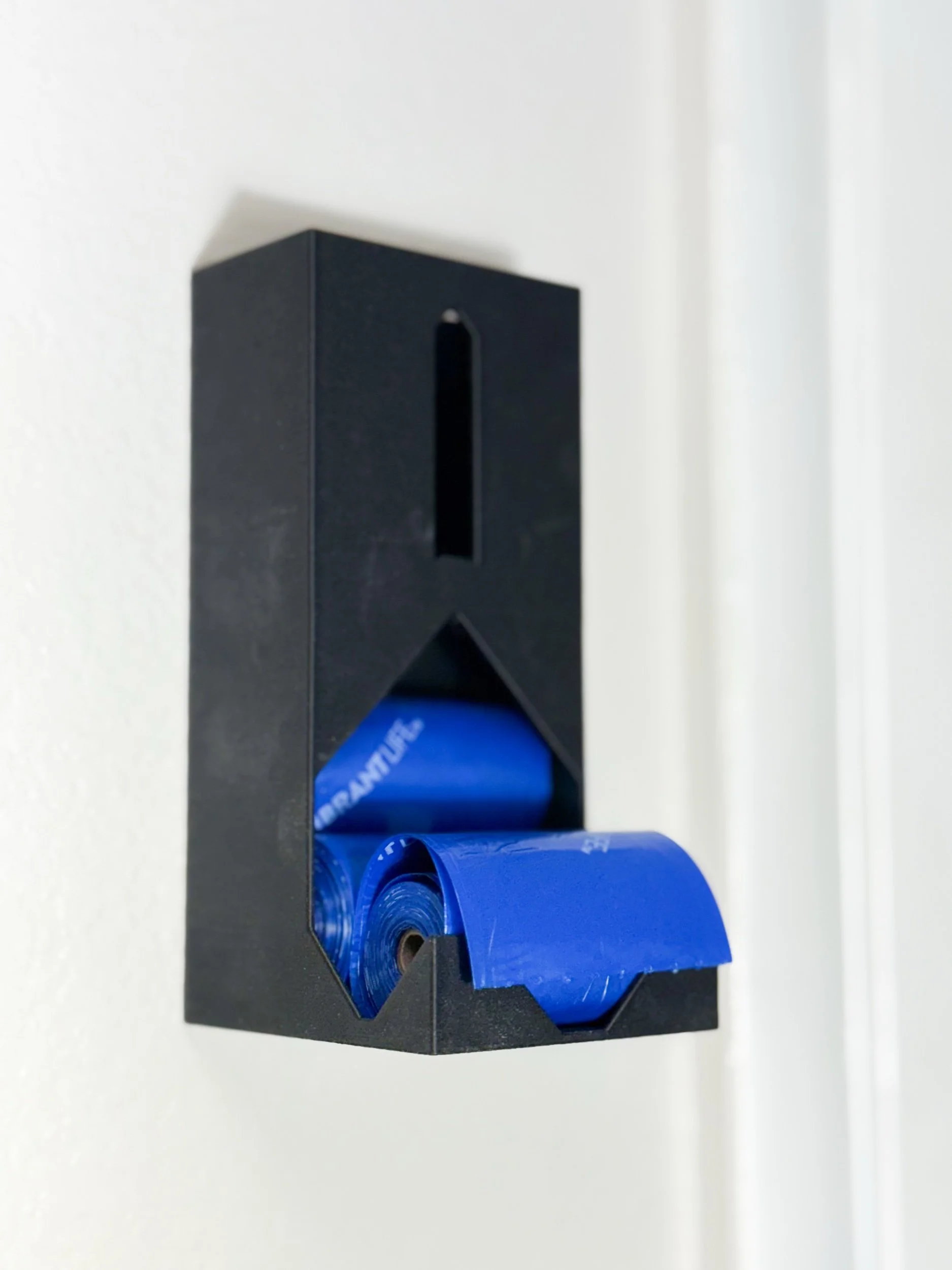 Poop bag roll dispensers are easy to install by the door, with your leashes, over a dog crate, etc! With some double sided tape they can be placed on any wall! Holds up to 6 rolls so can grab a roll and restock your bag, or grab an individual bag for a quick potty trip!
